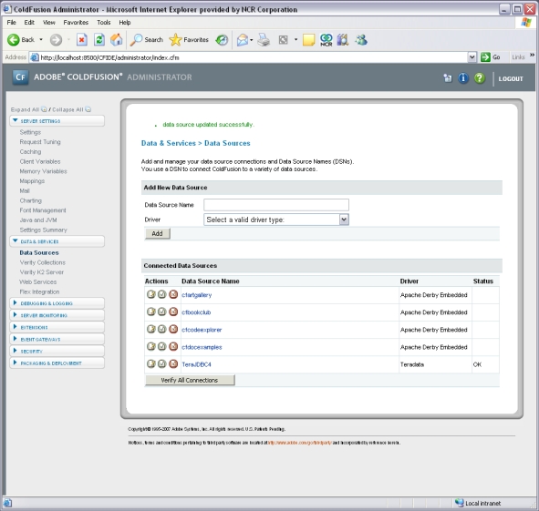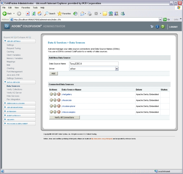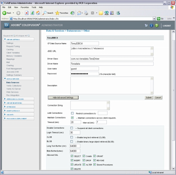 How to use the Teradata JDBC Driver with ColdFusion Sandbox Security